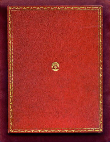 Roter Origina-Lederband mit goldgeprägtem Rückentitel sowie goldgeprägten Deckel- und Innenkantenfileten (signiert: Hübel & Denck, Leipzig).